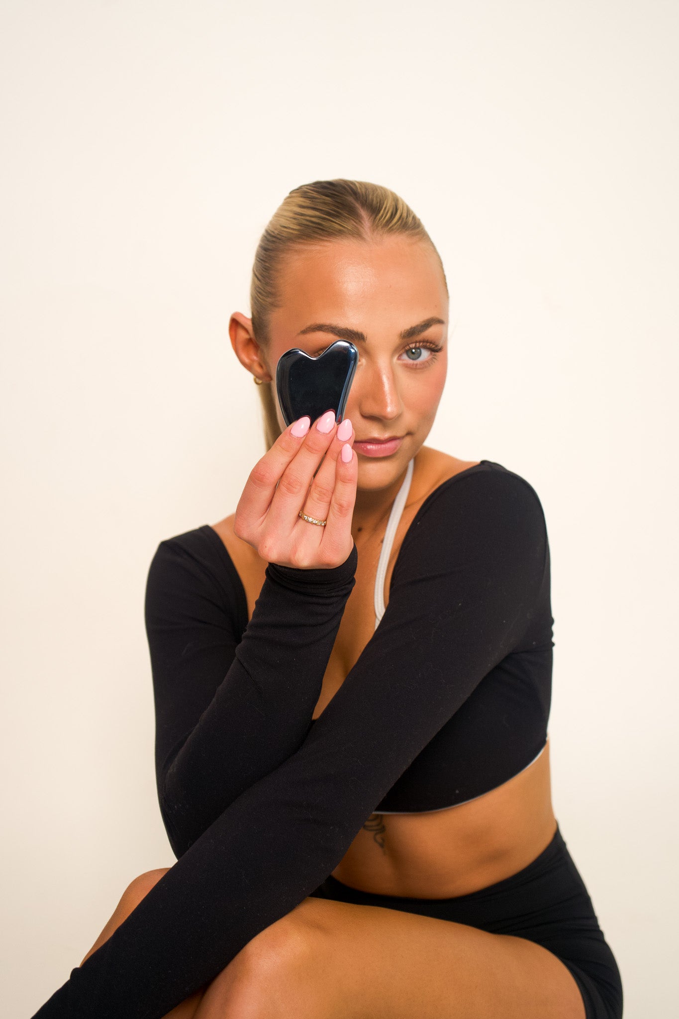 Start with a clean, moisturized face. Using gentle but firm strokes, glide the gua sha in upward motions along the jawline, cheekbones, and forehead. Use daily or a few times a week for best results.